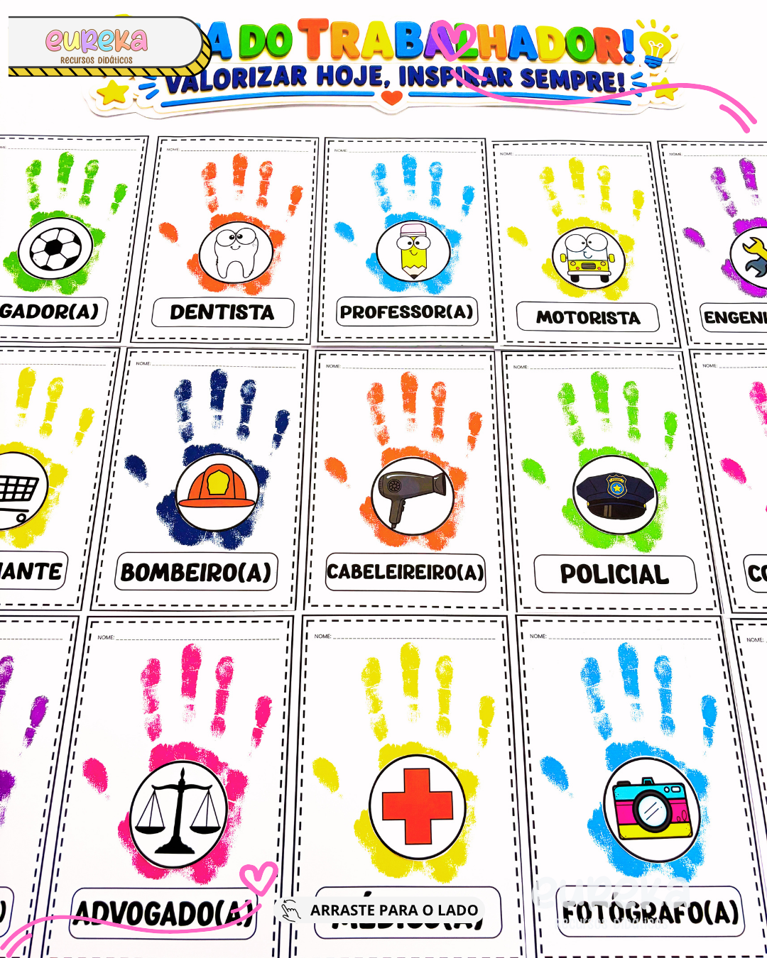 💛 Aqui, cada criança deixa sua marquinha no mundo através das mãozinhas coloridas, enquanto conhece diferentes profissões de forma leve, afetiva e significativa.