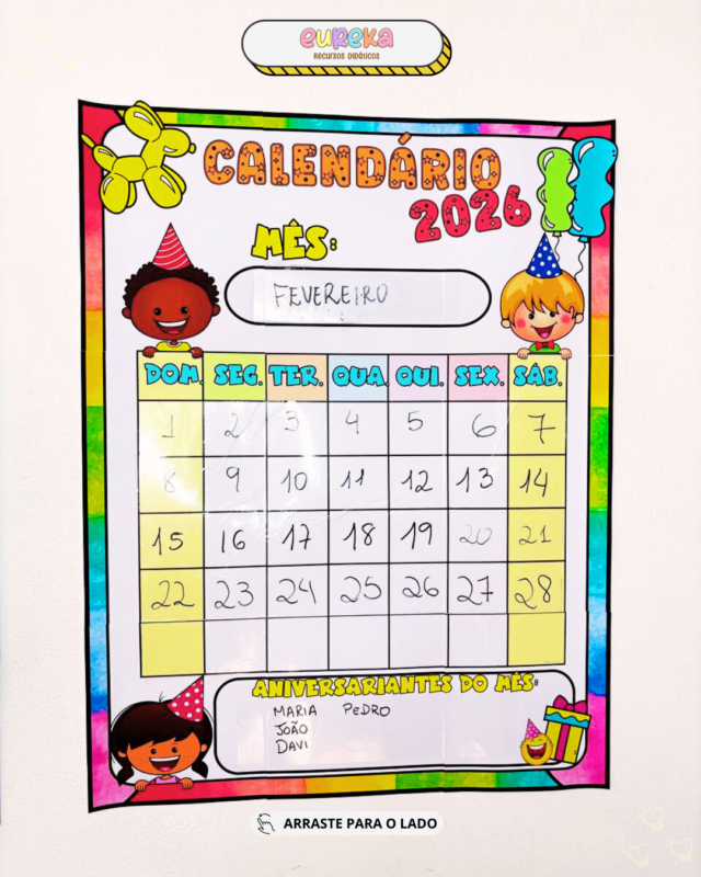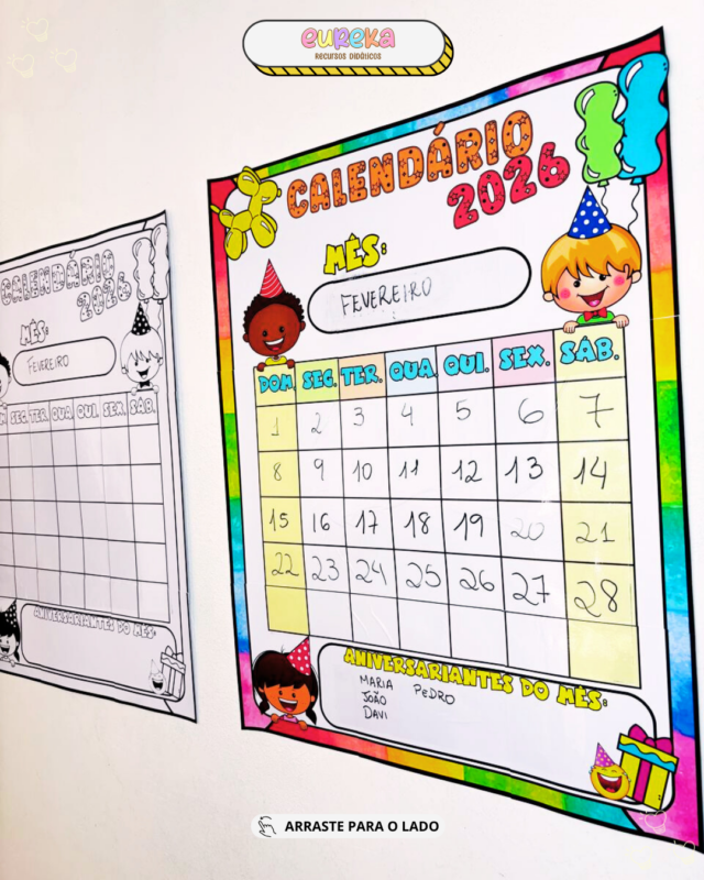 O Calendário Coletivo foi criado para transformar o acompanhamento dos dias, datas e meses em uma experiência visual, interativa e pedagógica, ideal para turmas da Educação Infantil e do Ensino Fundamental.