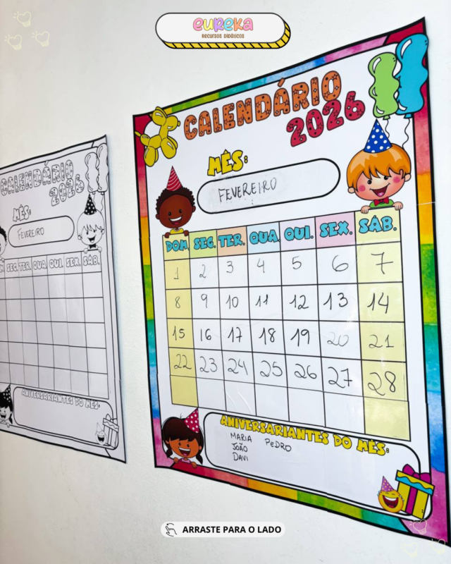 Mais do que marcar o dia, esse recurso ajuda a desenvolver noção de tempo, autonomia, responsabilidade e organização, tornando o calendário parte viva do dia a dia em sala de aula.