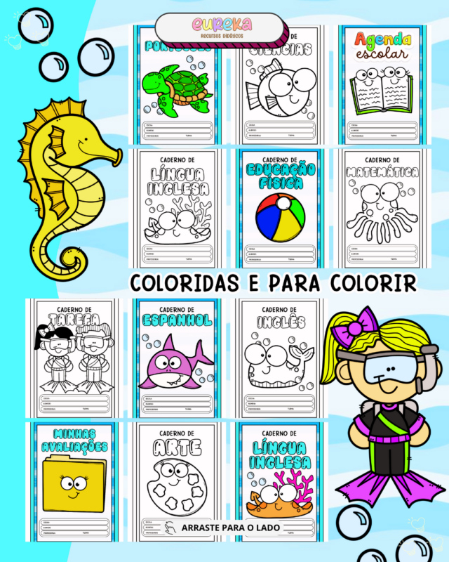 📘 Capinhas para as principais disciplinas e cadernos escolares: