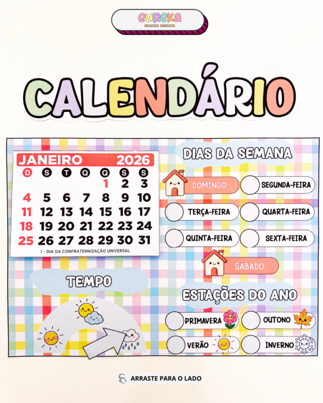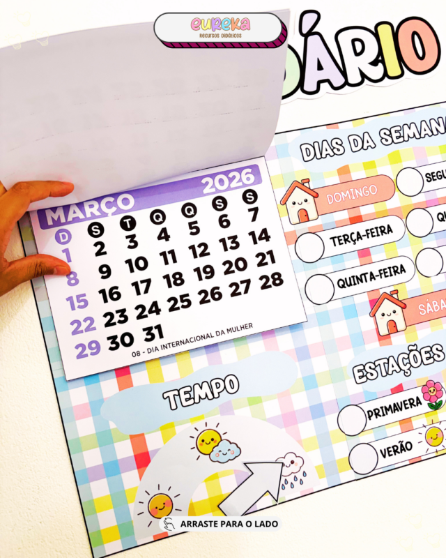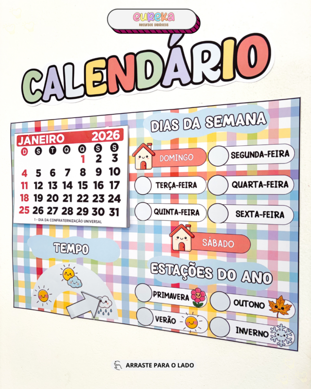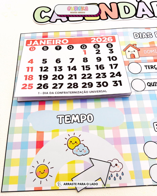 Ele transforma o calendário em um recurso pedagógico ativo, que ajuda as crianças a compreenderem a passagem do tempo de forma concreta, visual e conectada ao cotidiano.