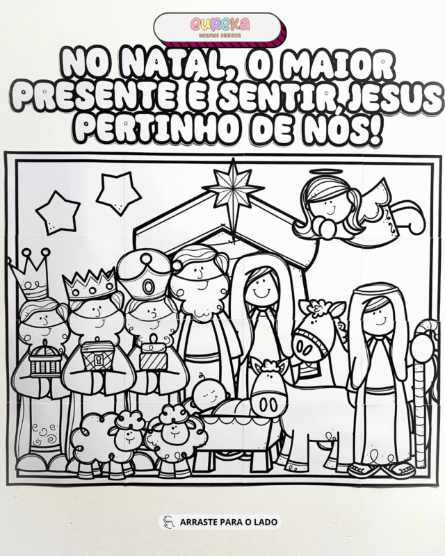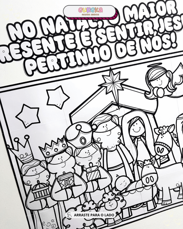 Neste material, cada aluno colore sua parte e, juntos, formam um painel lindo e emocionante — um registro coletivo cheio de amor, fé e gratidão.