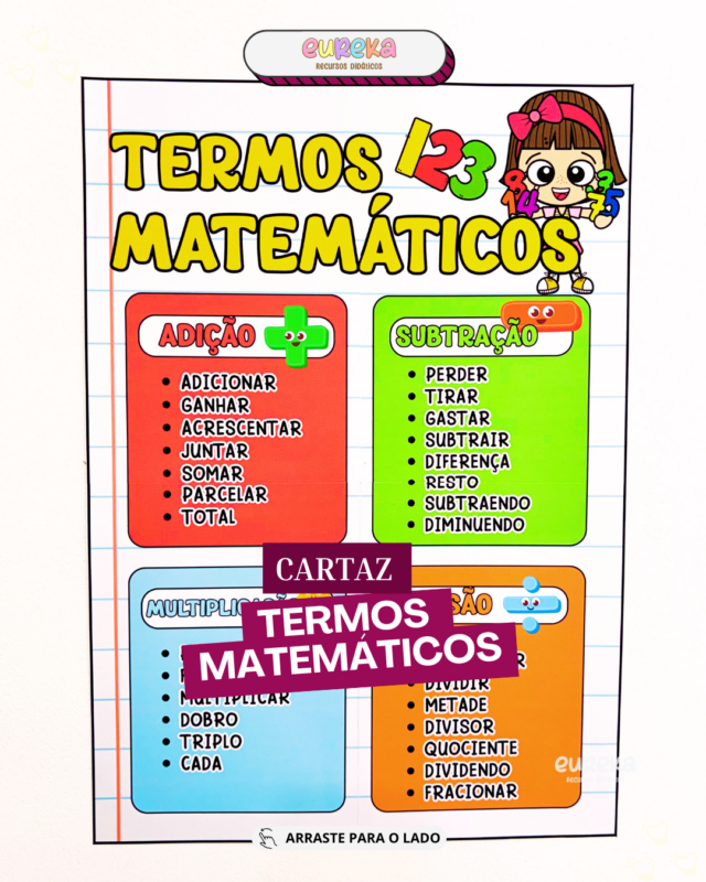 O Cartaz de Termos Matemáticos das 4 Operações foi criado para apoiar o ensino com clareza, intenção pedagógica e significado, ajudando o aluno a compreender o papel de cada parte da operação.