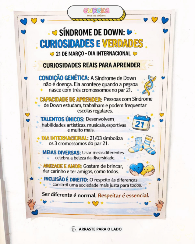 🌈 Cartaz Pedagógico – Dia Mundial da Síndrome de Down