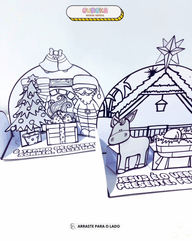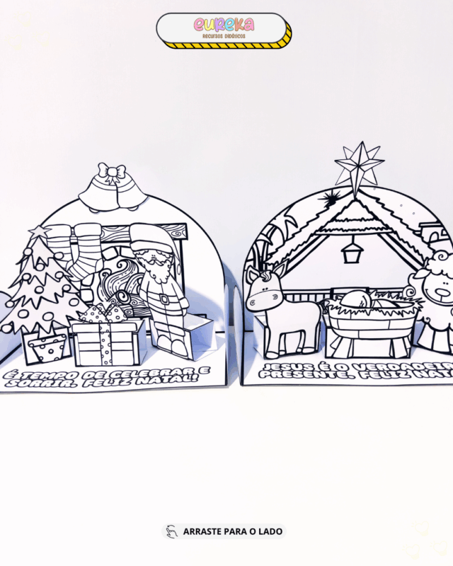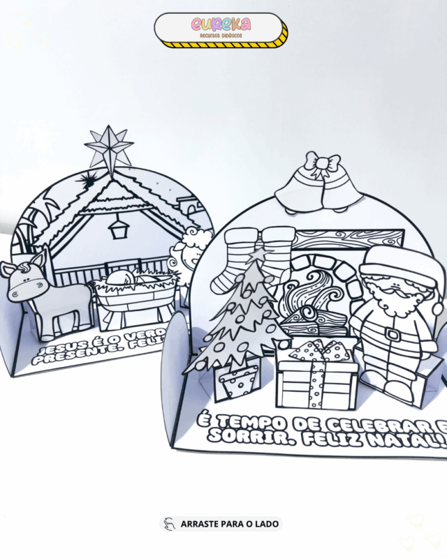 Com duas opções de montagem — uma representando o Natal Cristão e outra o Natal Comercial — o recurso permite trabalhar diferentes significados da data, ampliando repertórios culturais e reflexivos da turma.
