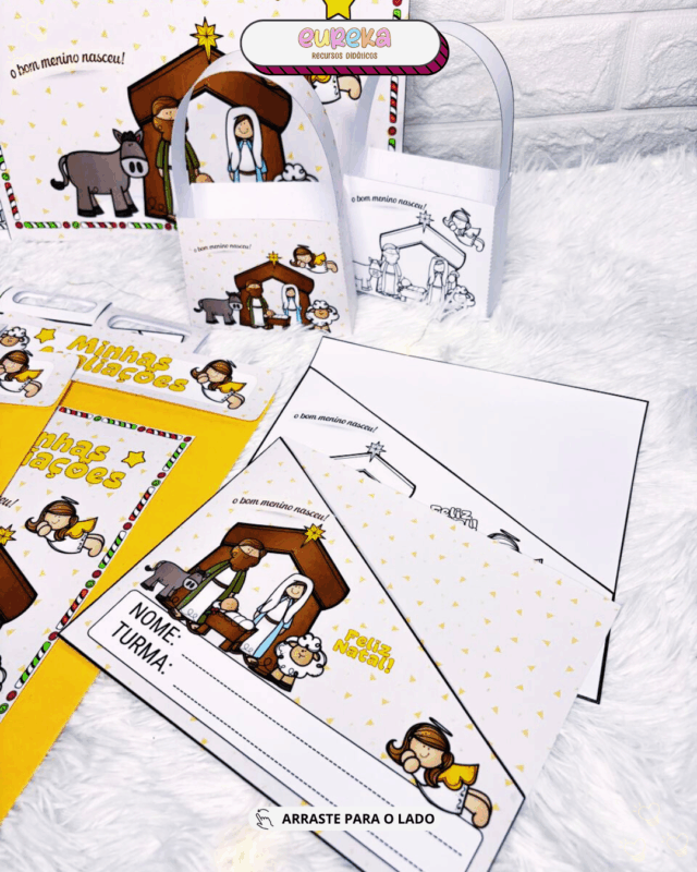 O Kit Capas e Sacolas – Tema Presépio foi criado exatamente para isso: ajudar professores e escolas a finalizarem o ano com cuidado, estética e propósito cristão.