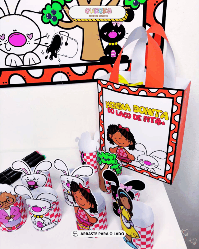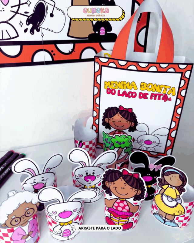 🧒🐰 Personagens 3D coloridos e para colorir – incluindo a Menina Bonita do Laço de Fita, Coelho Branco, Mamãe Coelha e outros elementos para dramatizações e reconto.