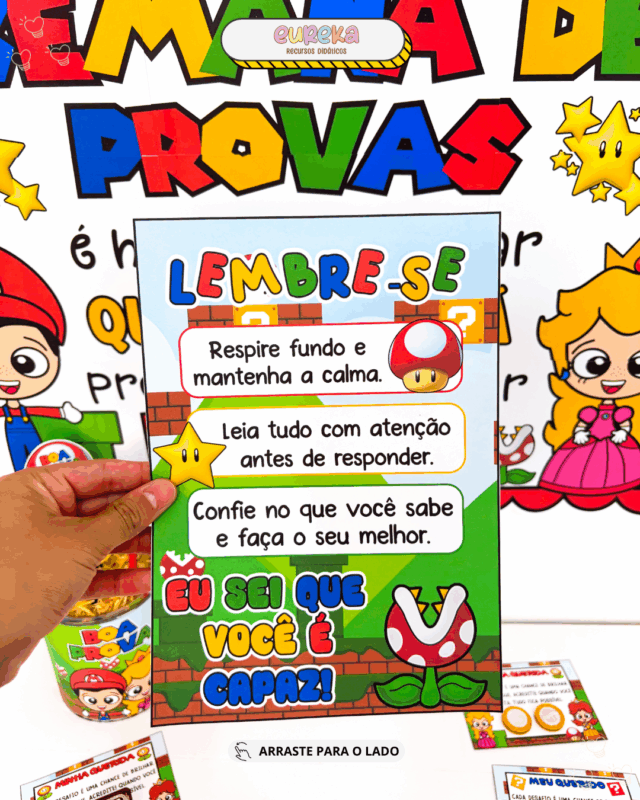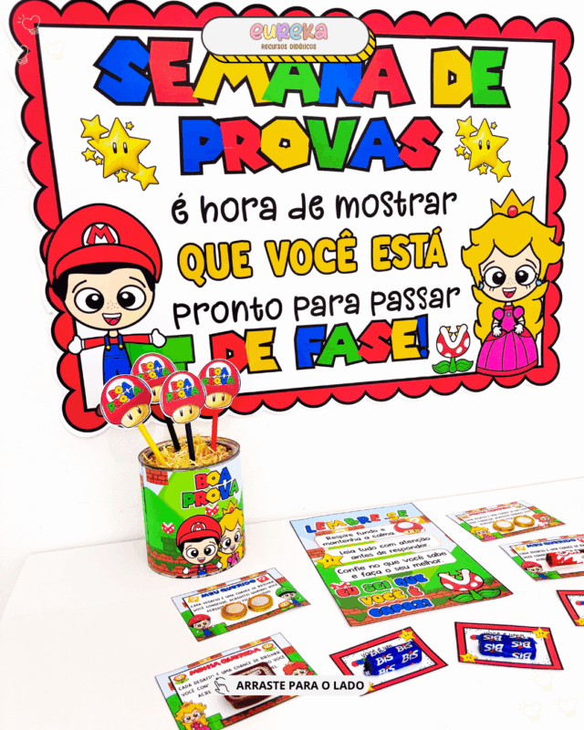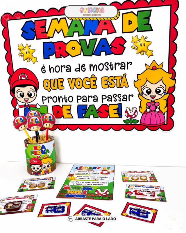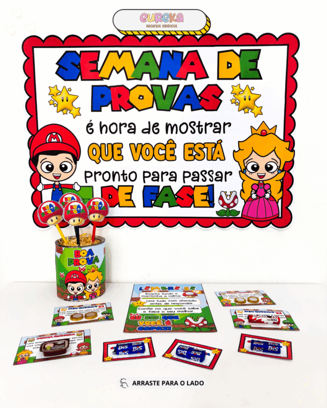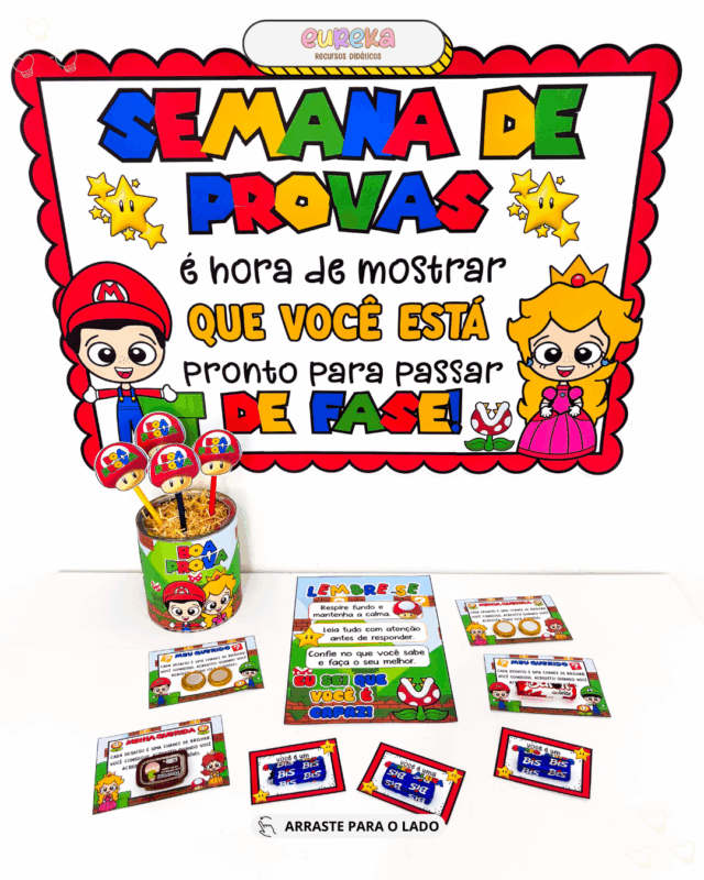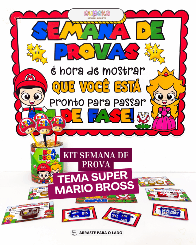 Pensando nisso, criamos o Kit Semana de Provas – Tema Super Mário, um material encantador que transforma esse período em uma experiência divertida e positiva.