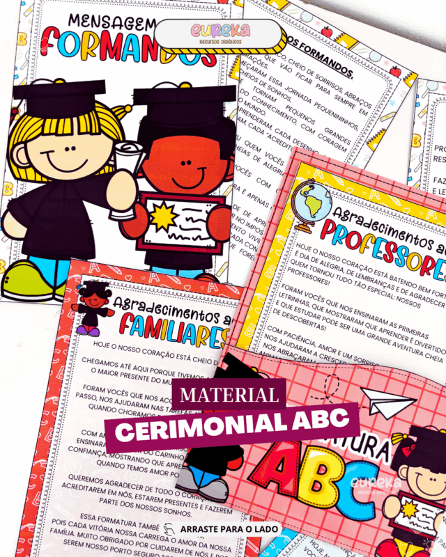 Pensando nisso, criamos o Kit Cerimonial do ABC, um material completo e prático que ajuda professores a organizarem uma cerimônia linda, emocionante e repleta de significado.