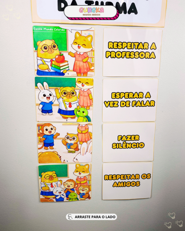 Esse material transforma regras em aprendizagem significativa, ajudando as crianças a compreenderem o que se espera delas no dia a dia da sala de aula — sem gritos, sem desgaste e com muito mais autonomia.