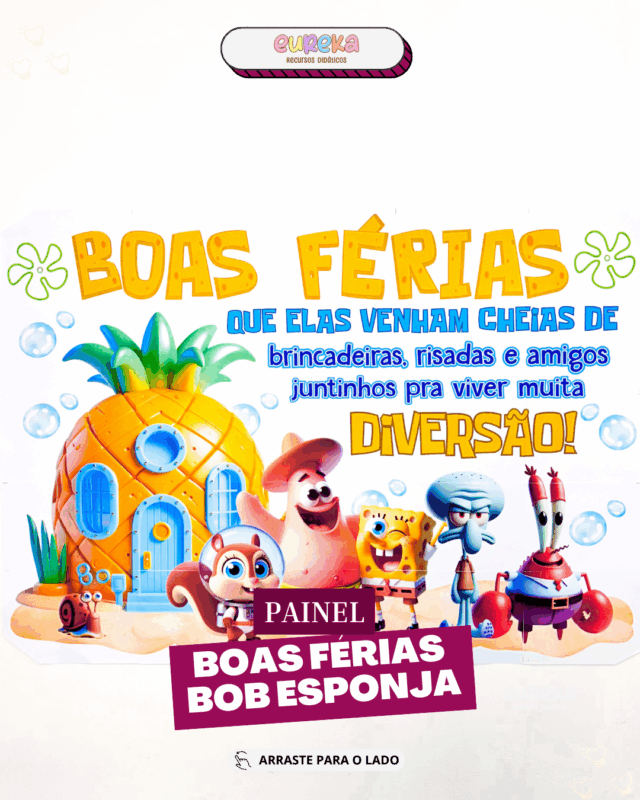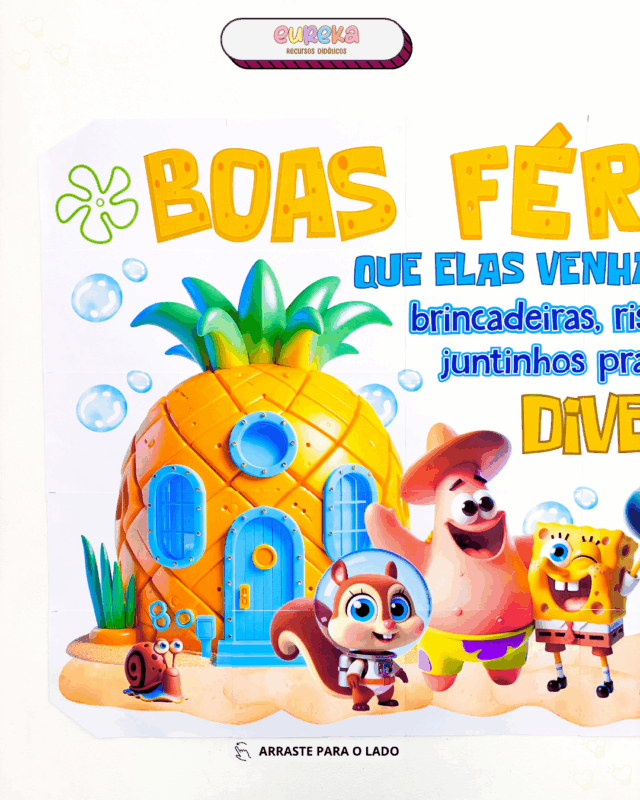 Pensando nisso, criamos um painel que transforma a sua escola em um espaço acolhedor, divertido e inesquecível, trazendo toda a leveza e magia do universo Bob Esponja.