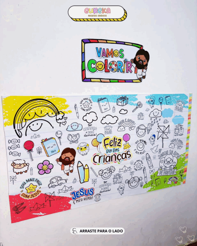 O Painel Pintura Coletiva Cristão foi desenvolvido para celebrar essa data tão significativa de forma lúdica, divertida e cheia de propósito. Ideal para escolas, igrejas e eventos cristãos, o material convida as crianças a pintarem juntas, expressando alegria e valores importantes da fé.