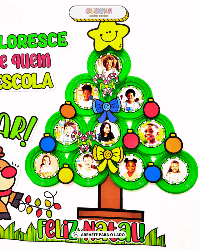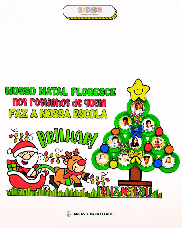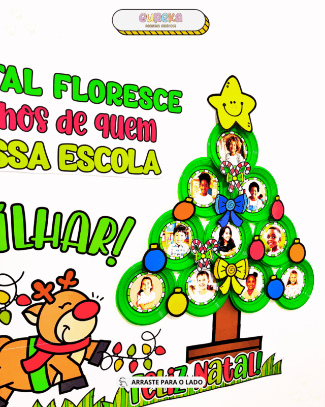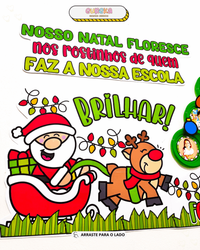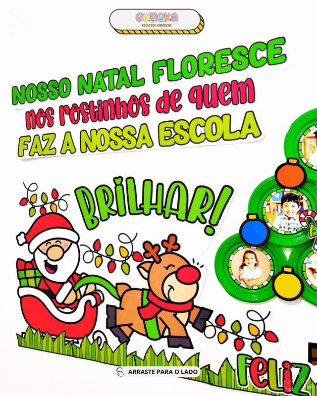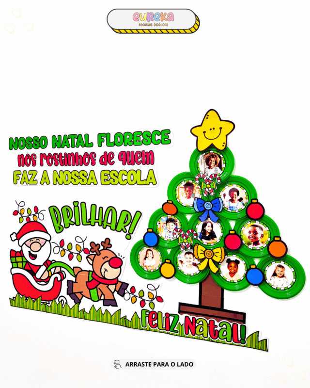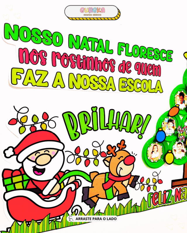 Com design exclusivo e efeito 3D encantador, o painel é perfeito para murais, recepções, corredores e eventos de encerramento. Ele traz o espírito natalino para a escola de um jeito colorido, acolhedor e cheio de amor!