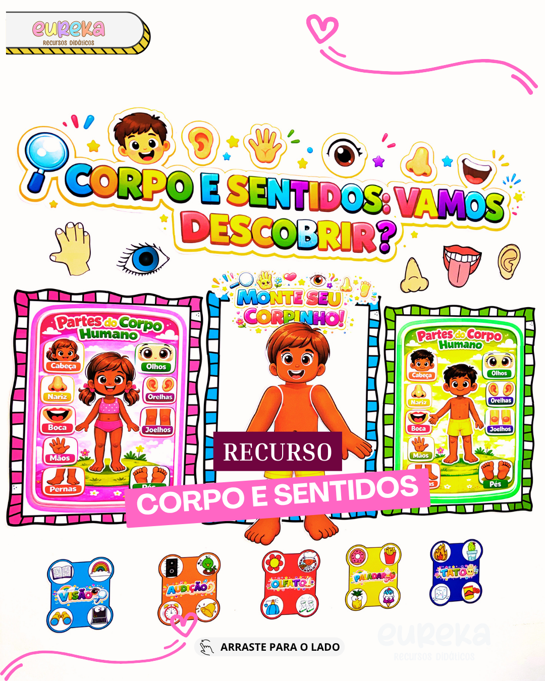✨ Pensando nisso, criamos o Recurso Corpo e Sentidos — um material completo com 67 páginas, pronto para transformar suas aulas em uma experiência envolvente, prática e inesquecível!